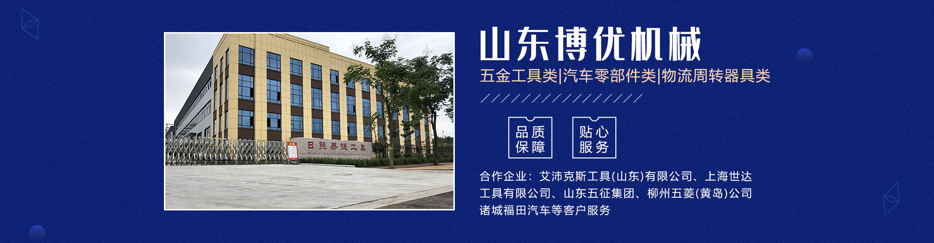 分公司日照易捷工具制造有限公司坐落在山東省日照市五蓮縣工業(yè)園,占地65畝(五蓮縣日照路與人民路交匯處),現有員工60名。公司主要產品有五金工具類及汽車零部件類、模具制作等三大系列。 主要設備有加工中心、數控車床生產線、磨床、研磨機、拋光機、冷鐓擠壓成型機、數控液壓模鍛錘等機械加工設備140余臺套。公司主要為艾沛克斯工具(山東)有限公司、上海世達工具有限公司、山東五征集團、柳州五菱(黃島)公司、諸城福田汽車等客戶服務。公司多年被評為優(yōu)秀供應商。